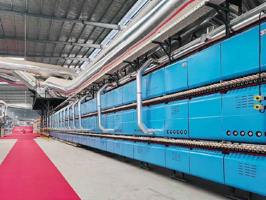 该项目包含一条Carboneutral系列双层辊道窑、DHD-EM系列高效自循环六层干燥器、釉线干燥器等热工装备。主要生产厚度8-11mm,600×1200、750×1500、800×1600、900×1800mm等多规格高端抛釉砖产品。